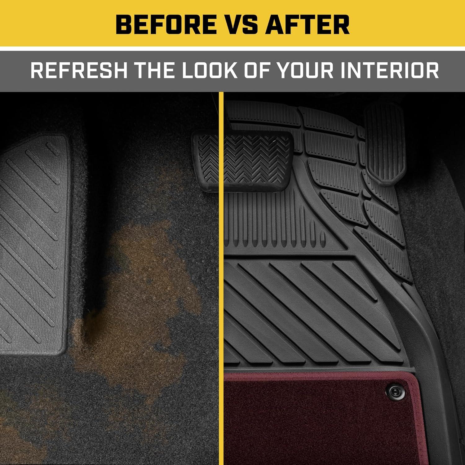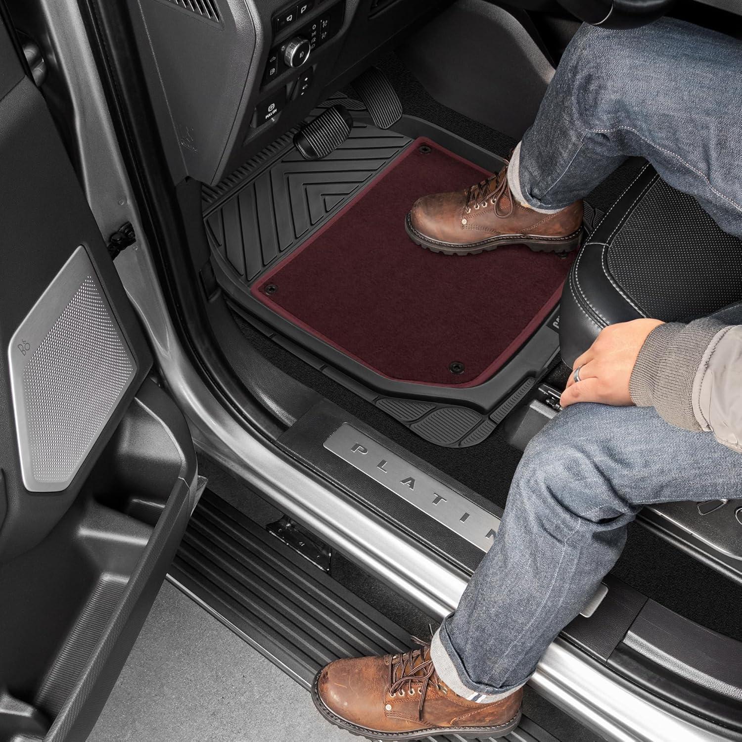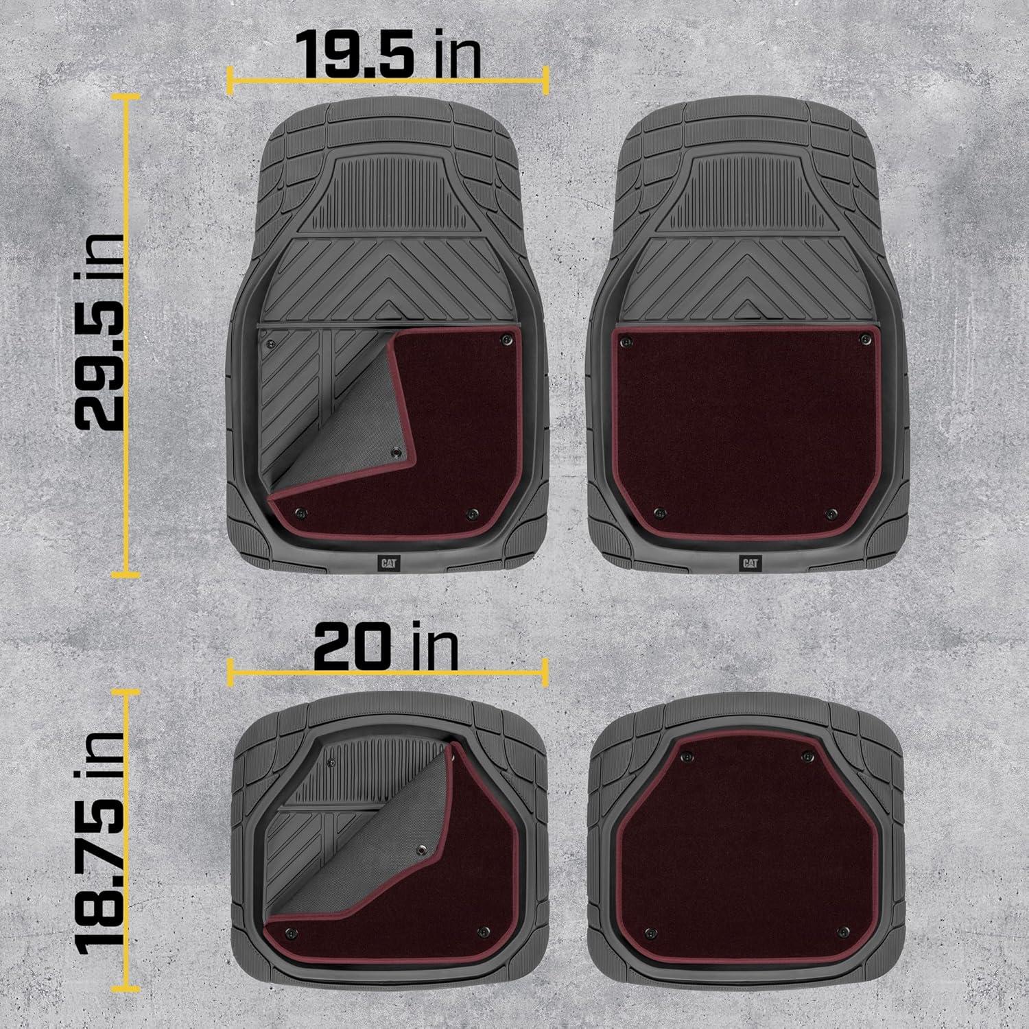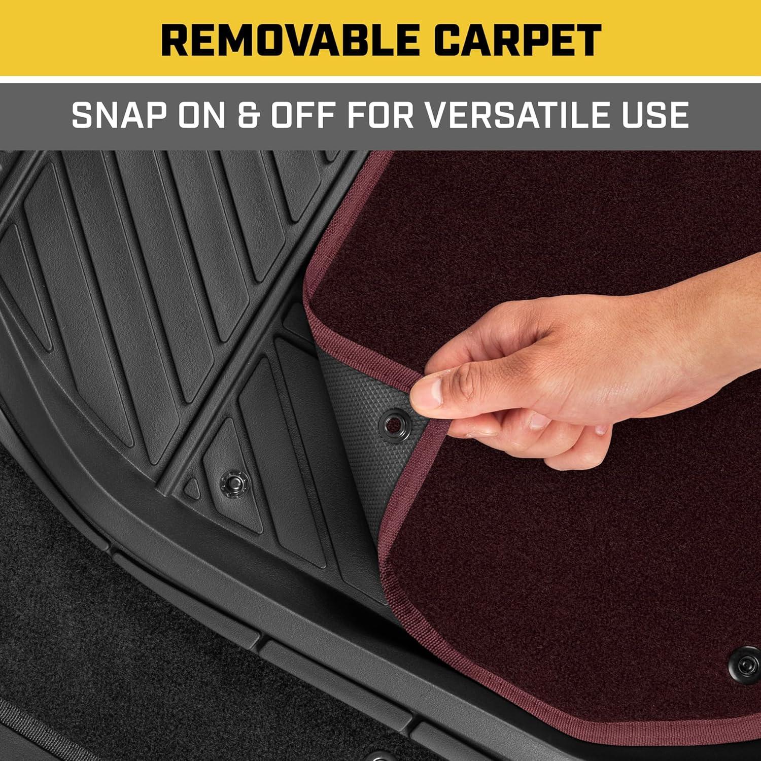 imageCat Detachable Deep Dish Car Floor Mats for Auto Rubber w Removable Carpet Liner  EasyClean Automotive Floor Liners Heavy Duty All Weather Set BlackBlack and Burgundy